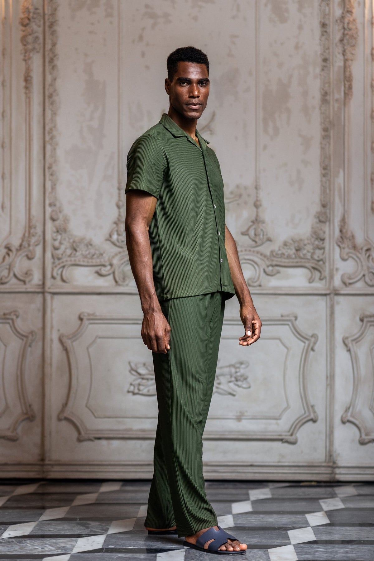 Introducing our meticulously crafted Pleated Trousers, a refined and versatile addition to your wardrobe. Imbued with a perfect blend of sophistication and comfort, these trousers are designed to complement your discerning taste and elevate your style. Impeccably tailored pleats define the front of these trousers, imparting a sense of classic elegance and adding a touch of texture to your ensemble. The carefully placed pleats create a polished look while maintaining ease of movement. Crafted from a high-quality blend of fabrics, our Pleated Trousers offer a luxurious feel against your skin. The fabric not only provides comfort throughout the day but also ensures durability for long-lasting wear, making these trousers a reliable choice for various occasions.